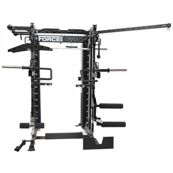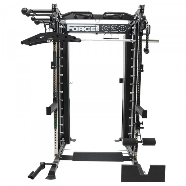 The Force USA G20 V2 All-In-One Trainer combines three fundamental pieces of strength equipment: a Smith machine, power rack, and functional trainer to make one money-saving, space-saving, efficient multi-trainer.